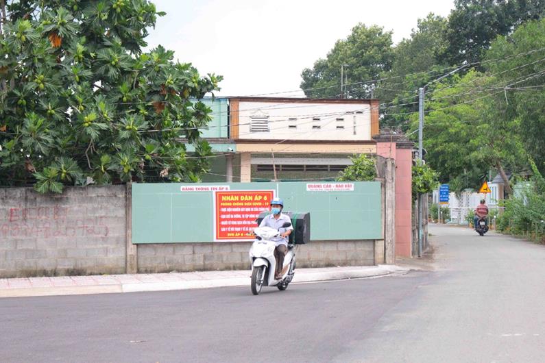 Cán bộ ấp 6, xã An Phước (H.Long Thành) tuyên truyền bằng loa lưu động về xây dựng nông thôn mới tới người dân