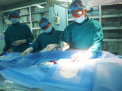 Các bác sĩ BVĐK Đồng Nai đang tiến hành nong van động mạch phổi cho bệnh nhân.