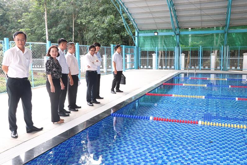 Phó Chủ tịch UBND tỉnh Nguyễn Sơn Hùng khảo sát hồ bơi Trường Tiểu học Hưng Lộc (huyện Thống Nhất)