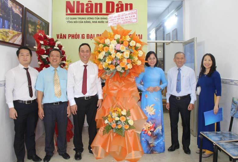 Phó Chủ tịch UBND tỉnh Nguyễn Thị Hoàng chúc mừng Văn phòng đại diện Báo Nhân Dân tại Đồng Nai