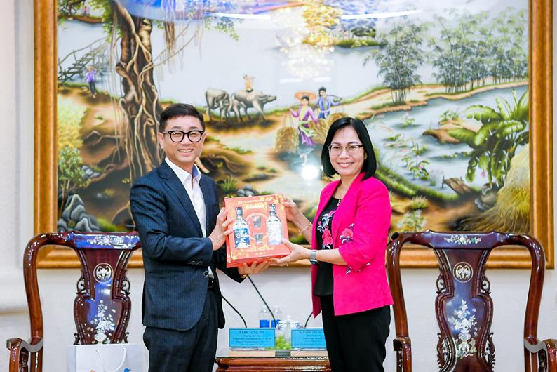 Đại diện tỉnh Gyeongnam tại TP.HCM tặng quà lãnh đạo tỉnh.