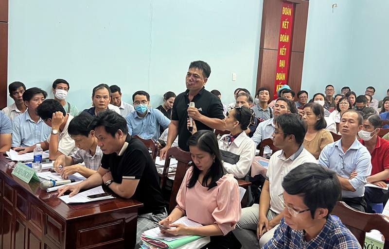 Đại diện cư dân đưa ra nhiều câu hỏi về pháp lý của dự án, xác nhận hoàn thành hạ tầng kỹ thuật và hạ tầng xã hội để đủ điều kiện cấp giấy chứng nhận quyền sử dụng đất. Thời gian tái khởi động dự án, nợ thuế của nhà đầu tư có ảnh hưởng đến năng lực thực hiện dự án, khi nào người dân có thể xây nhà…