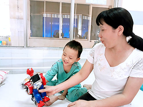 Khoảng 2 tháng trước, trong lần khám sức khỏe định kỳ tại lớp học cho bé Trần Đức Minh, (4 tuổi, ngụ xã Bắc Sơn, huyện Trảng Bom), một y tá của trạm y tế xã đã nghi ngờ bé bị bệnh tim. Người y tá khuyên gia đình đưa bé lên BV khám để có kết quả chính xác. “Khi cầm kết quả con bị bệnh tim bẩm sinh, tôi rất bất ngờ, lo sợ. Vì suốt 4 năm qua, con tôi không hề có biểu hiện của căn bệnh này thường thấy như là mệt, khó thở, khóc tím tái. Có điều là bé ăn uống tốt nhưng lại khó tăng cân, hay bị viêm đường hô hấp và ngủ không sâu giấc”, mẹ bé Minh cho hay.