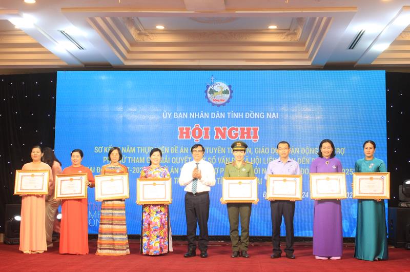 Phó Chủ tịch UBND tỉnh Nguyễn Sơn Hùng trao bằng khen cho các tập thể đạt thành tích xuất sắc trong thực hiện 2 đề án