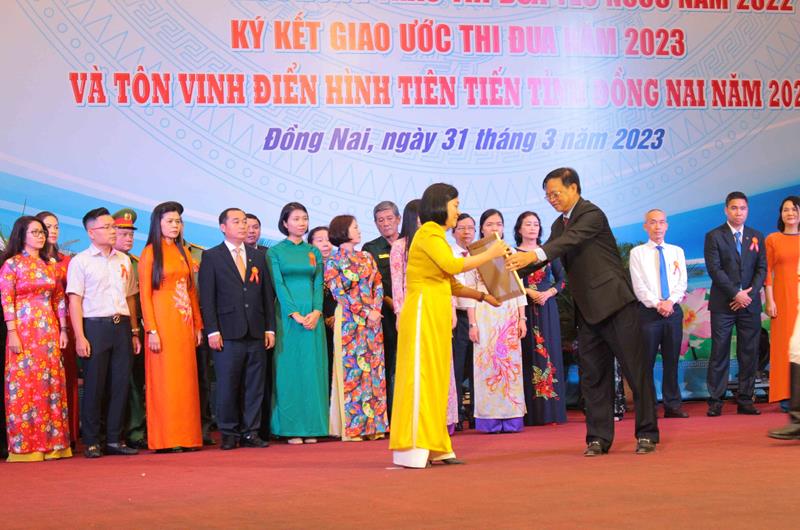 Chủ tịch UBND tỉnh Cao Tiến Dũng trao khen thưởng cho các tập thể, cá nhân có thành tích xuất sắc trong phong trào thi đua yêu nước năm 2022
