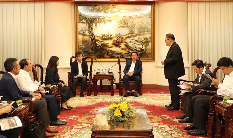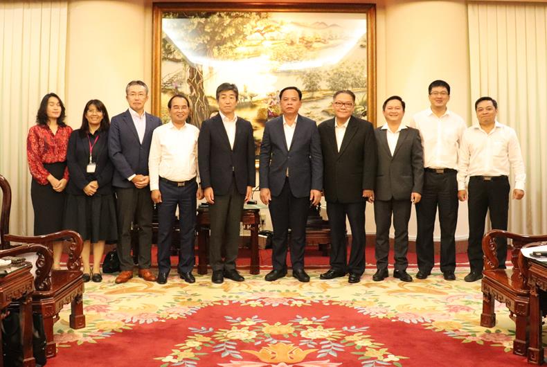 Ông Nakagawa Tetsuyuki, Tổng Giám đốc Aeon Mall Việt Nam chia sẻ thông tin của dự án với Quyền Chủ tịch UBND tỉnh Võ Tấn Đức và đoàn làm việc của tỉnh