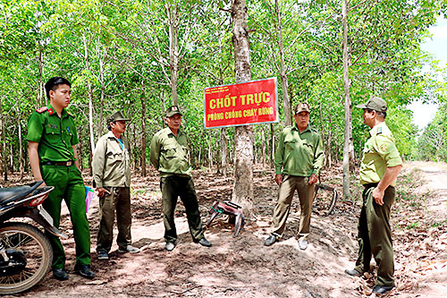 Nói về công tác phòng, chống cháy rừng, anh Nguyễn Văn Trượng (nhân viên bảo vệ rừng Phân trường Đầm Voi) chia sẻ, ngay từ sáng sớm, các anh đã chạy xe máy vào rừng sâu để canh trực phòng, chống cháy theo kế hoạch đã phân công, đến trưa các anh mới trở về phân trường ăn vội cơm rồi quay trở lại trực tiếp chứ không được nghỉ ngơi. Những người phân công trực trên chòi cao 25m thì mang cơm trưa theo ăn và canh trực từ 10 giờ sáng đến 15 giờ chiều, sau đó đi tuần tra, nhắc nhở tuyên truyền các hộ dân sinh sống trong lâm phận cùng phối hợp làm tốt công tác phòng cháy chữa cháy rừng (PCCCR).
