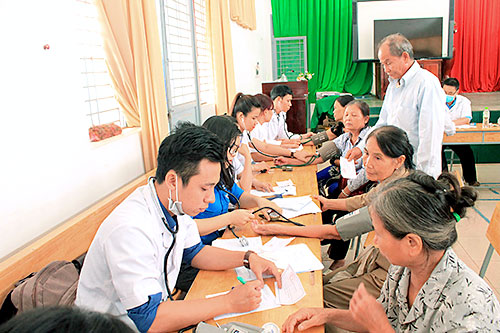 Đoàn viên tham gia khám bệnh cho người dân sau lễ ra quân.