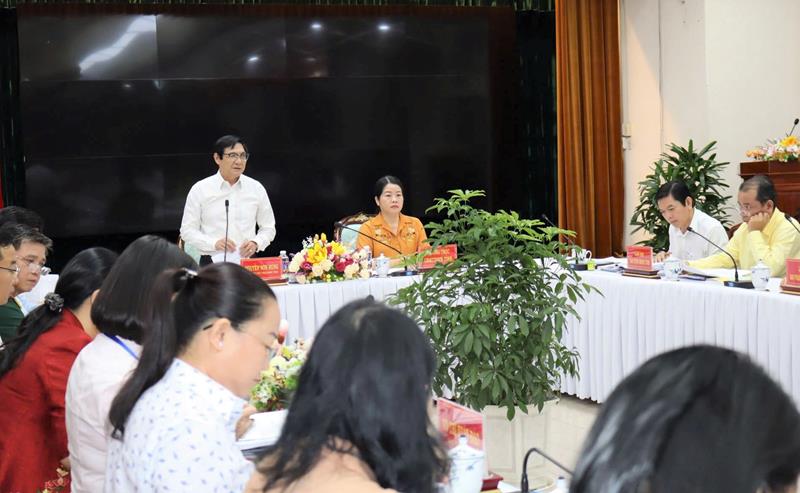 Ông Huỳnh Việt Cường, Phó Trưởng ban Kinh tế - Ngân sách HĐND tỉnh có ý kiến đề nghị Sở Tài nguyên và Môi trường làm rõ cơ sở các nghị quyết về phí, lệ phí dự kiến trình có mức điều chỉnh tăng khoảng 40% (theo lý giải do lương cơ sở tăng); cơ chế hỗ trợ đầu tư xây dựng nhà ở xã hội, tính toán cơ sở mức hỗ trợ 20% hạ tầng cho doanh nghiệp.