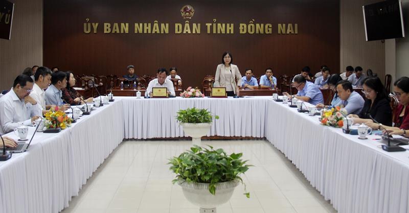 (CTT-Đồng Nai) - Chiều 18-10, Quyền Chủ tịch UBND tỉnh Võ Tấn Đức, Phó Chủ tịch UBND tỉnh Nguyễn Thị Hoàng đã chủ trì buổi làm việc với các sở, ngành, đơn vị liên quan để nghe đơn vị tư vấn báo cáo quy hoạch thương mại - dịch vụ trên địa bàn tỉnh.