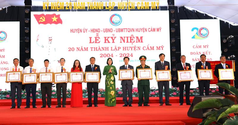 Dịp này, UBND tỉnh đã trao bằng khen 12 tập thể và 13 cá nhân có nhiều đóng góp trong quá trình 20 năm xây dựng huyện Cẩm Mỹ.