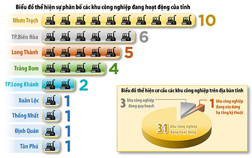 Đồ họa thể hiện cơ cấu các khu công nghiệp, sự phân bố các khu công nghiệp đang hoạt động trên địa bàn Đồng Nai hiện nay