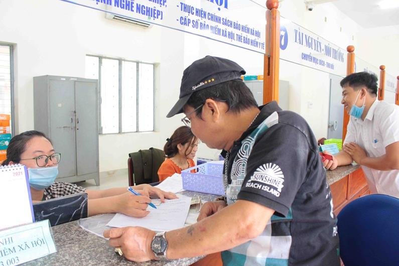 Bộ phận một cửa huyện Định Quán đang hướng dẫn thủ tục hành chính cho người dân