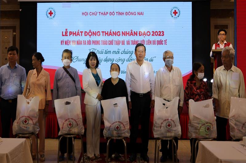 Dịp này, Hội Chữ thập đỏ tỉnh đã tiếp nhận 1,7 tỷ đồng ủng hộ cho tháng nhân đạo. Đồng thời, tại buổi lễ nhiều hoạt động trao tặng quà đã được ban tổ chức thực hiện, gồm: tặng quà cho 82 người khiếm thị đang sinh sống tại TP.Biên Hòa (650 ngàn đồng/phần), trao 200 suất đi chợ 0 đồng cho 200 hộ dân nghèo, hộ gia đình có hoàn cảnh khó khăn, công nhân lao động và gia đình chính sách có công (600 ngàn đồng/suất), trao 30 suất học bổng cho học sinh có hoàn cảnh khó khăn vượt khó, học giỏi, sống tốt (1 triệu đồng/suất), tặng 20 phần quà cho trẻ tự kỉ…