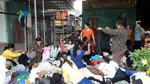 Chị Lê Thị Châu, 30 tuổi, đến “Sạp quần áo yêu thương” tại ấp 5, xã Thanh Sơn, huyện Định Quán để chọn cho mình, chồng và các con những bộ quần áo mới, đẹp. Chị Châu cho biết, gia đình chị rời Campuchia về đây sinh sống đã 6 năm. Không được học hành đàng hoàng, không nghề nghiệp ổn định, hằng ngày vợ chồng chị đi làm vườn, rẫy thuê để kiếm tiền nuôi các con nhỏ. Thu nhập từ việc làm thuê, làm mướn không ổn định, cuộc sống cứ thiếu trước hụt sau nên chị cũng không dám nghĩ đến việc mua sắm, làm đẹp cho bản thân. Cầm trên tay những bộ đồ vừa chọn được, chị Châu vui mừng nói: “Sạp ở đây có nhiều đồ mới, đẹp. Tôi cũng lựa được cho gia đình những bộ đồ ưng ý để mặc vào dịp Tết mà không phải tốn tiền. Gia đình tôi cảm ơn các nhà từ thiện nhiều lắm…”.