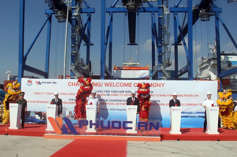 (CTT-Đồng Nai) - Tổng Công ty Tân Cảng Sài Gòn và Công ty CP Dầu khí đầu tư khai thác Cảng Phước An (Công ty Cảng Phước An) tổ chức lễ đón chuyến tàu đầu tiên của hãng tàu container SITC cập cảng dưới sự đồng thuận và hợp tác của hai bên.