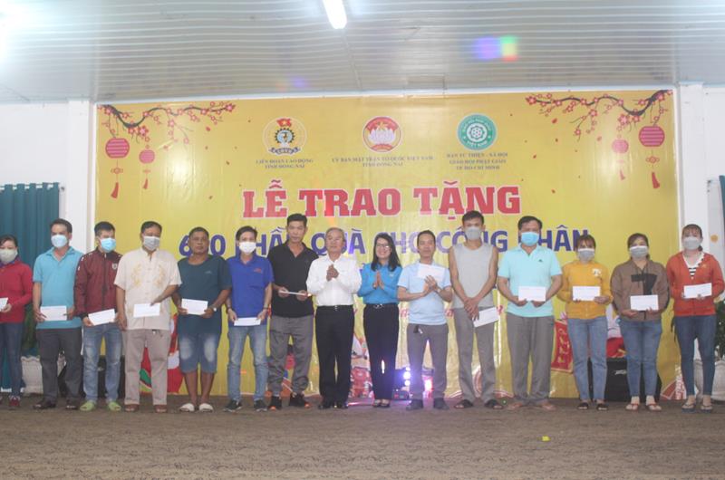Liên đoàn Lao động (LĐLĐ) tỉnh vừa phối hợp cùng Ủy ban MTTQ Việt Nam tỉnh và Ban từ thiện - xã hội Giáo hội Phật giáo TP.HCM tổ chức lễ trao tặng quà cho công nhân lao động có hoàn cảnh khó khăn tại các doanh nghiệp thuộc Khu công nghiệp Tam Phước, TP.Biên Hòa. Ủy viên Ban TVTU, Chủ tịch Ủy ban MTTQ Việt Nam tỉnh Cao Văn Quang, Chủ tịch LĐLĐ tỉnh Nguyễn Thị Như Ý tham dự.