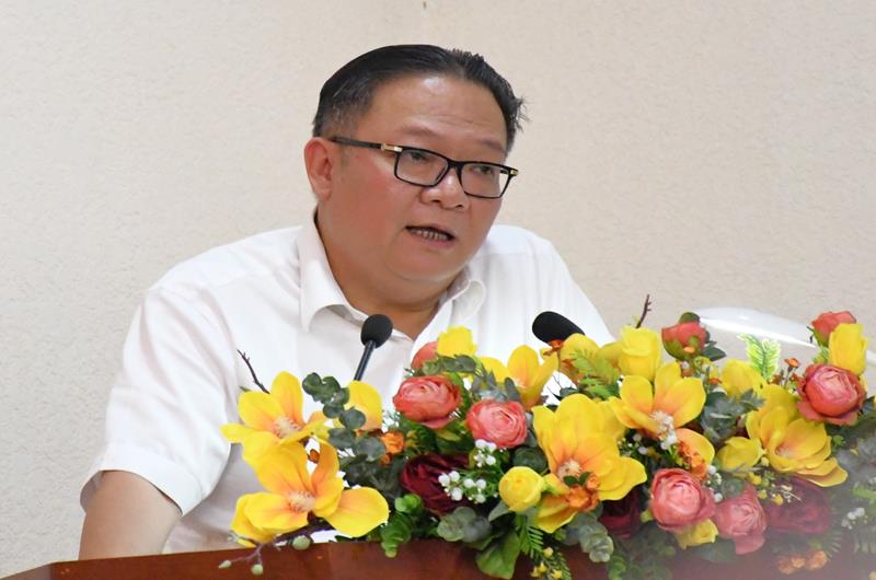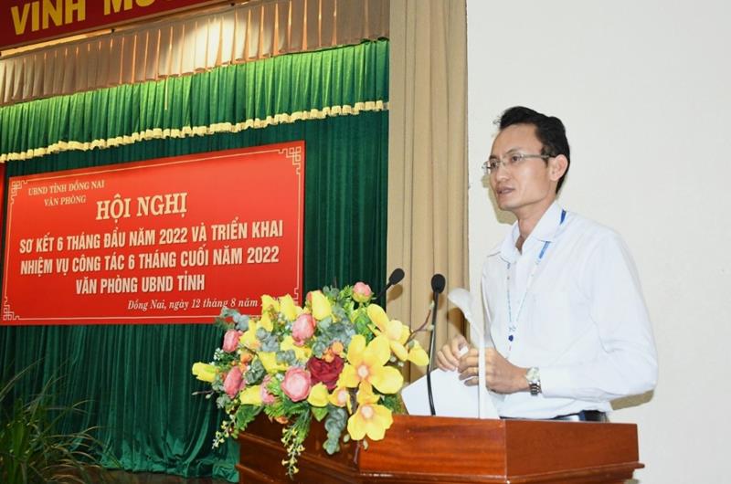 Chánh Văn phòng UBND tỉnh Nguyễn Kim Long phát biểu tại hội nghị