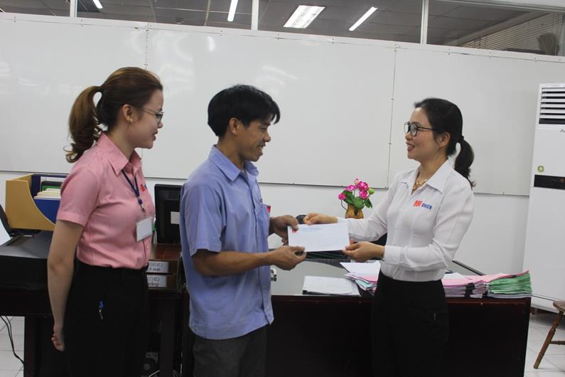 Công đoàn Công ty TNHH sản xuất đồ mộc Chien Việt Nam tặng quà công nhân tích cực trong công việc