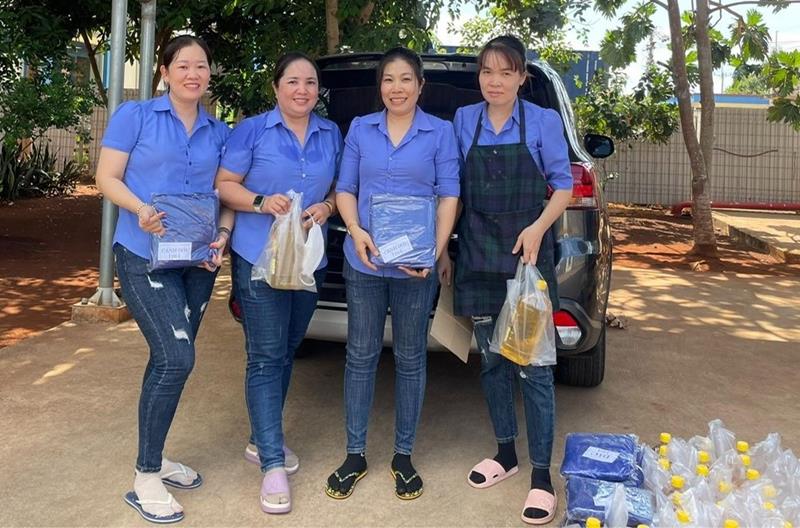 Cụ thể, Công ty TNHH Pouchen Việt Nam (phường Hóa An, thành phố Biên Hòa), DN cho công nhân nghỉ lễ từ ngày 29-4 đến 1-5-2024. Ngoài thưởng tiền cho tất cả công nhân trong công ty, Công đoàn cơ sở còn tặng quà cho công nhân gồm nhu yếu phẩm như: hạt nêm, dầu ăn, các vật dụng khác…