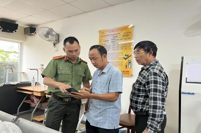 Một cán bộ Công an tỉnh hướng dẫn người dân thực hiện cài đặt phần mềm quản lý định danh điện tử (VNeID) do Bộ Công an quản lý trên điện thoại di động
