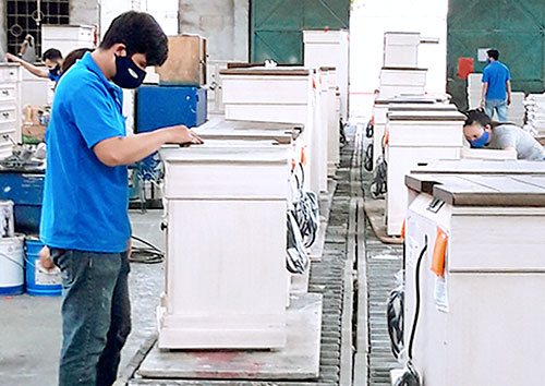 Công nhân trong giờ sản xuất tại Công ty TNHH Sanlim Furniture.