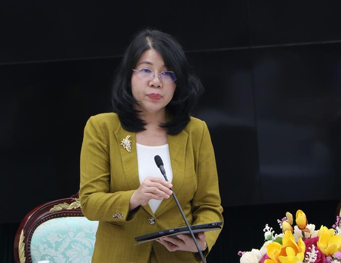 Phó Chủ tịch HĐND tỉnh Hoàng Thị Bích Hằng phát biểu tại hội nghị