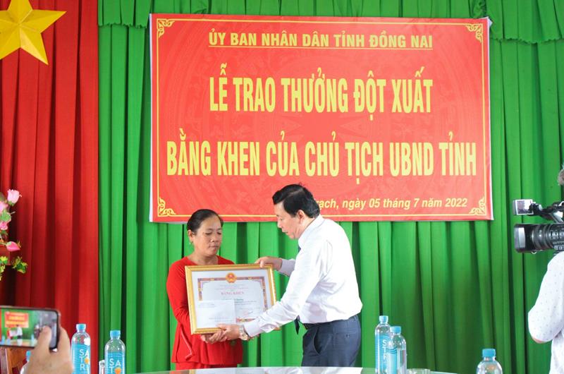 Lễ trao khen thưởng đột xuất bằng khen của Chủ tịch UBND tỉnh cho chị Võ Thị Tuyết Hương gương điển hình người tốt việc tốt “nhặt được của rơi trả người đánh mất”