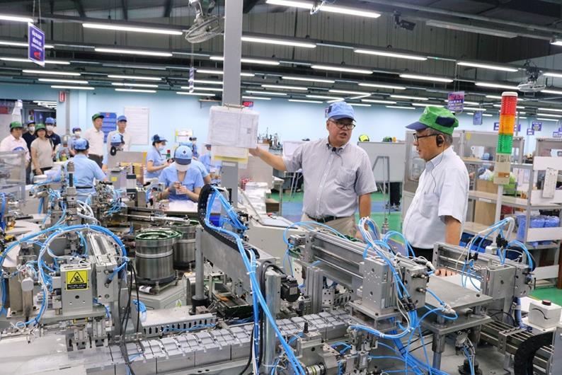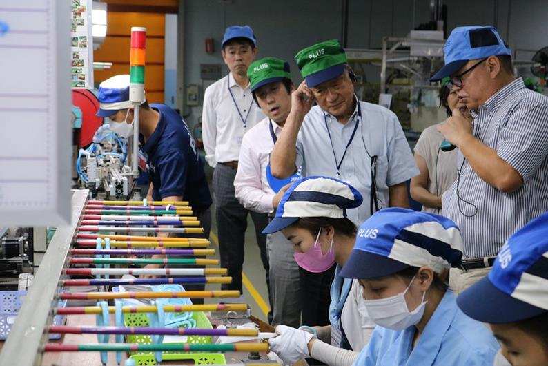 Ông Yoshihisa Imaizumi, Chủ tịch Tập đoàn Plus (thứ 2 từ trái sang) thăm nhà máy sản xuất tại tỉnh Đồng Nai