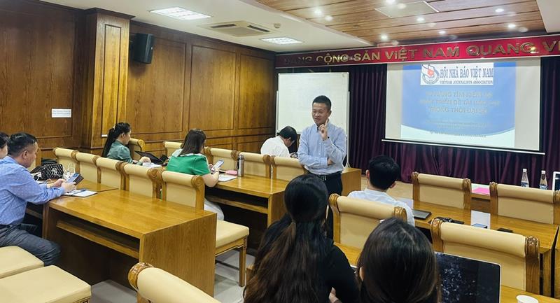 Nhà báo Bùi Tiến Dũng chia sẻ tại lớp tập huấn