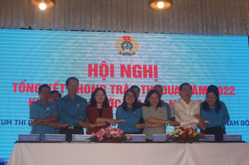 Cụm thi đua 7 LĐLĐ tỉnh Đông Nam bộ gồm: Đồng Nai, Bình Dương, Bình Thuận, Bình Phước, Ninh Thuận, Tây Ninh và Bà Rịa-Vũng Tàu. Năm 2022, các đơn vị đã thực hiện nhiều hoạt động mang lại lợi ích cho đoàn viên, NLĐ. Cụ thể, hỗ trợ xây, sửa gần 100 căn nhà Mái ấm Công đoàn với tổng số tiền 4,4 tỷ đồng; ký kết chương trình thỏa thuận hợp tác với các sản phẩm, dịch vụ ưu đãi đem lại lợi ích cho đoàn viên. Tính đến nay, có 122 doanh nghiệp tham gia ký kết thỏa thuận và trên 93 ngàn đoàn viên được thụ hưởng lợi. Về phát triển tổ chức, các đơn vị đã thành lập mới được 406 Công đoàn cơ sở, đạt 130,5% chỉ tiêu; phát triển mới gần 186 ngàn đoàn viên. Trong năm, có 4.792 đoàn viên được kết nạp vào tổ chức Đảng. Các phong trào thi đua yêu nước được phát động sâu rộng, thu hút đoàn viên, NLĐ hăng hái tham gia.