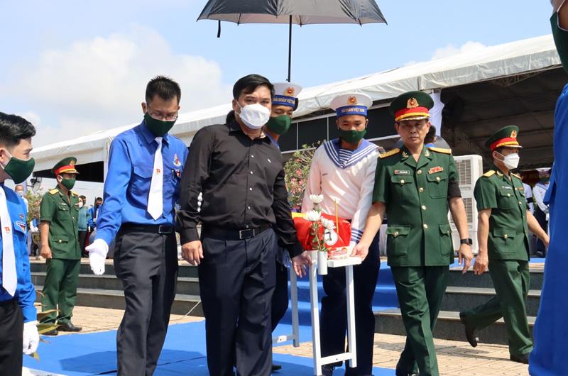Bí thư Thành ủy - Bí thư Đảng ủy Quân sự TP.Long Khánh Hồ Văn Nam trong lễ truy điệu, an táng hài cốt liệt sĩ tại Phước An, Nhơn Trạch