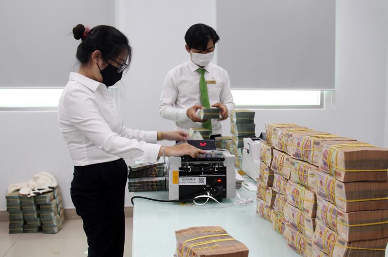 Hoạt động kiểm đếm tiền mặt tại một chi nhánh ngân hàng thương mại ở TP.Biên Hòa