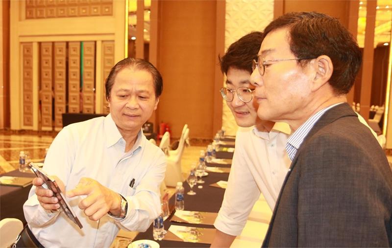 Ủy viên Ban Thường vụ Tỉnh ủy, Chủ nhiệm Ủy ban Kiểm tra Tỉnh ủy Huỳnh Thanh Bình trao đổi thông tin với đại diện các tổ chức PCPNN, doanh nghiệp FDI, hiệp hội nước ngoài tham dự hội nghị.