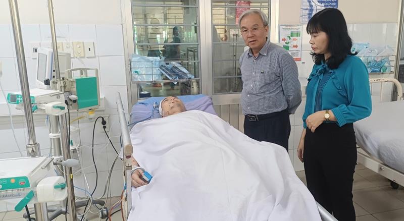 Chủ tịch Ủy ban MTTQ Việt Nam tỉnh Cao Văn Quang và Giám đốc Sở Lao động, Thương binh và Xã hội Nguyễn Thị Thu Hiền đã đến Bệnh viện Đa khoa Thống Nhất thăm công nhân bị tai nạn lao động