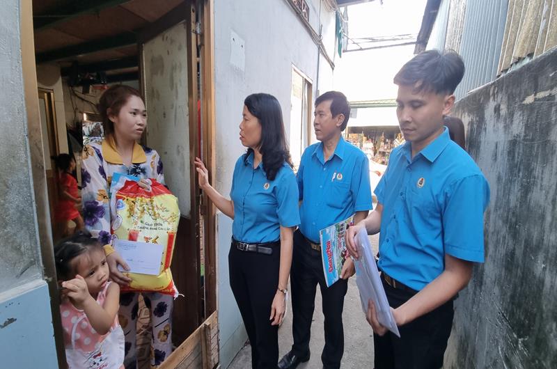 Liên đoàn Lao động H.Trảng Bom thăm, tặng quà công nhân tại phòng trọ