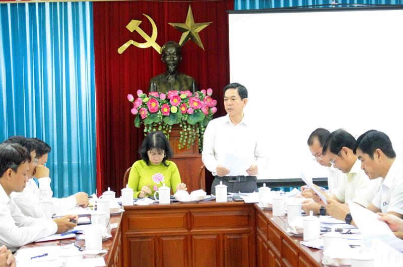 Trưởng Ban Kinh tế - Ngân sách HĐND tỉnh Nguyễn Kim Phước phát biểu tại cuộc họp