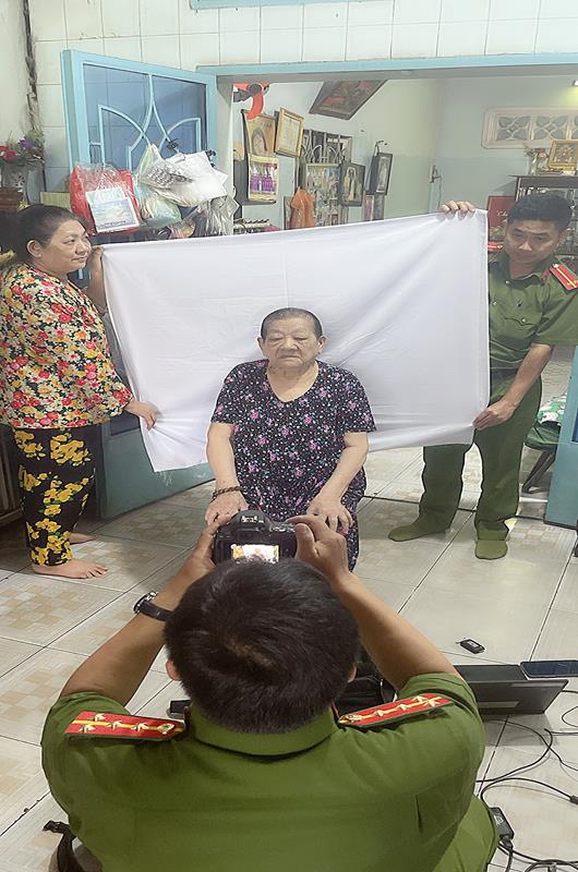 Tổ công tác đang thu nhận hồ sơ cấp căn cước công dân cho bà Trần Thị Chính, công dân Đồng Nai, tạm trú tại TP.Thủ Đức (TP.Hồ Chí Minh)