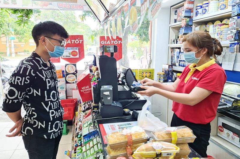 Nhân viên siêu thị cà thẻ ATM của khách hàng để thanh toán tiền mua hàng