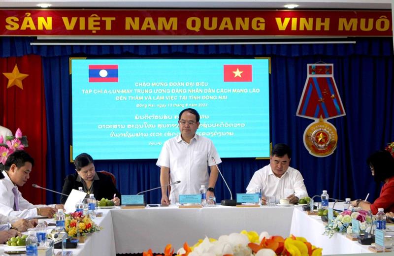 (CTT-Đồng Nai) – Ngày 13-8, Đoàn đại biểu Tạp chí A-lun-may của Trung ương Đảng Cách mạng nhân dân Lào đã đến thăm và làm việc tại Đồng Nai. Các đồng chí: Quản Minh Cường, Phó Bí thư Tỉnh ủy, Trưởng Đoàn đại biểu Quốc hội tỉnh; Vi-La-Vone Phăn –Tha - Vông, Ủy viên Thường vụ, Phó Trưởng Ban Tuyên huấn Trung ương Đảng nhân dân cách mạng Lào; PGS.TS Phạm Minh Tuấn, Phó Tổng biên tập phụ trách Tạp chí cộng sản chủ trì buổi làm việc.