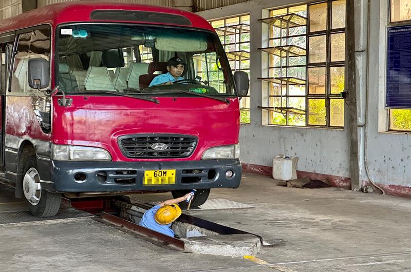 Trung tâm Đăng kiểm xe cơ giới 60-02S (TP.Long Khánh) thực hiện đăng kiểm cho các xe ô tô đến hạn. Ảnh: Trúc Viên