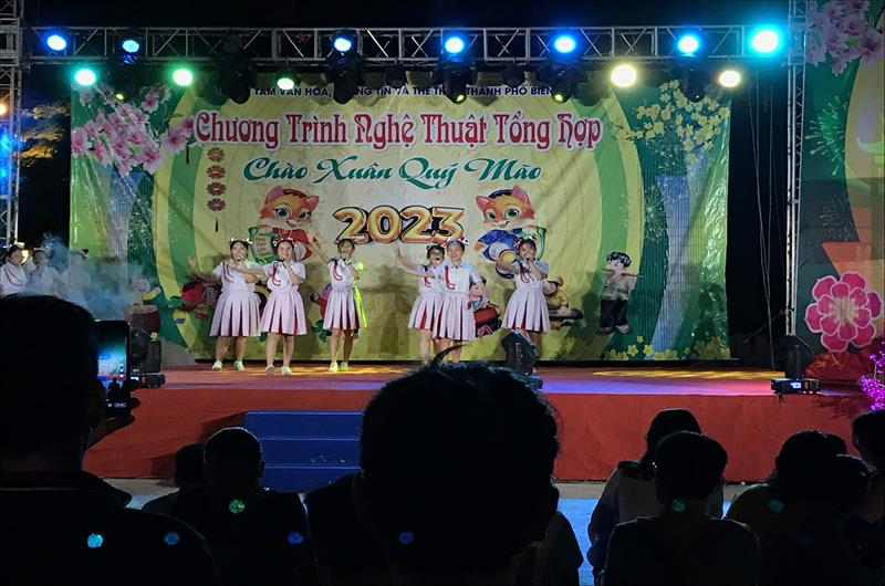 Chương trình văn nghệ mừng Đảng - mừng Xuân Quý Mão 2023 do Trung tâm VHTT-TT TP.Biên Hòa phối hợp cùng Nhà thiếu nhi tỉnh biểu diễn tại công viên Biên Hùng vào tối mùng 2 Tết