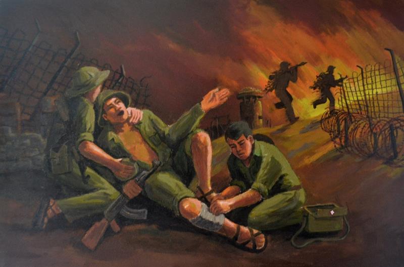 Một tác phẩm tranh sơn dầu của họa sĩ Đào Tấn Hưng về đề tài thương binh, liệt sĩ