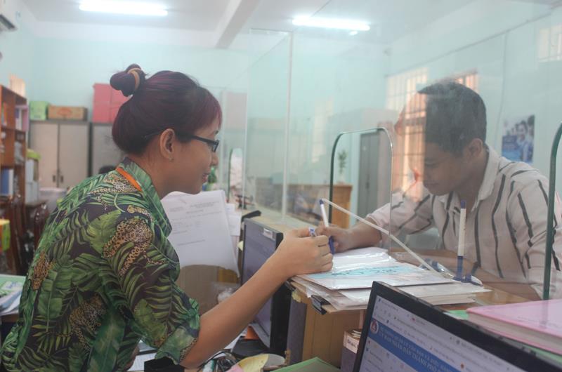 Cán bộ công chức tại Bộ phận một cửa P.Tân Vạn, TP.Biên Hòa hướng dẫn người dân giải quyết thủ tục hành chính