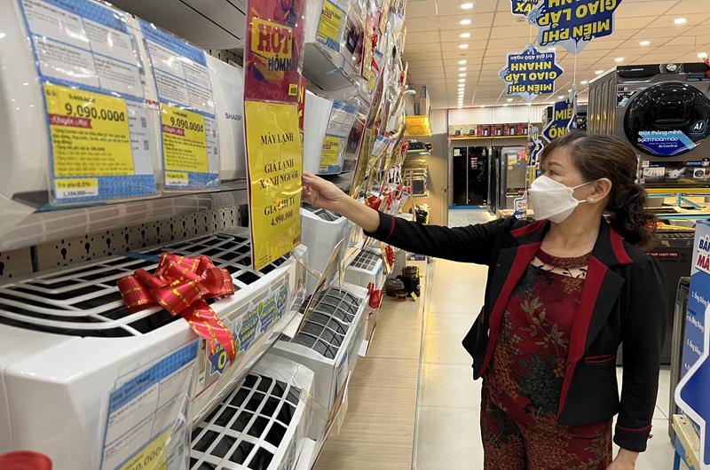 Theo đại diện nhiều siêu thị, trung tâm điện máy lớn trên địa bàn tỉnh, các dòng máy lạnh, tủ lạnh của các thương hiệu lớn như: Panasonic, Daikin, Toshiba, Samsung, Aqua… đang được nhiều người tiêu dùng tham khảo, chọn mua vào dịp này. Phần lớn các sản phẩm máy lạnh, thiết bị làm mát ở các siêu thị, cửa hàng, trung tâm điện máy thường có xuất xứ từ Việt Nam, Nhật Bản, Thái Lan, Malaysia, Indonesia... Trong đó, các sản phẩm có xuất xứ từ Việt Nam thường là các dòng sản phẩm, mẫu mã thuộc phân khúc bình dân.