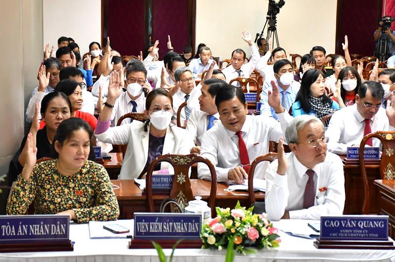 Các đại biểu biểu quyết thông qua Nghị quyết tại cuộc họp