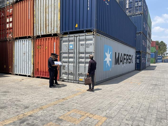Nhân viên Hải quan kiểm tra container chứa hàng tại Cảng Vàm Cỏ (Nhơn Trạch)