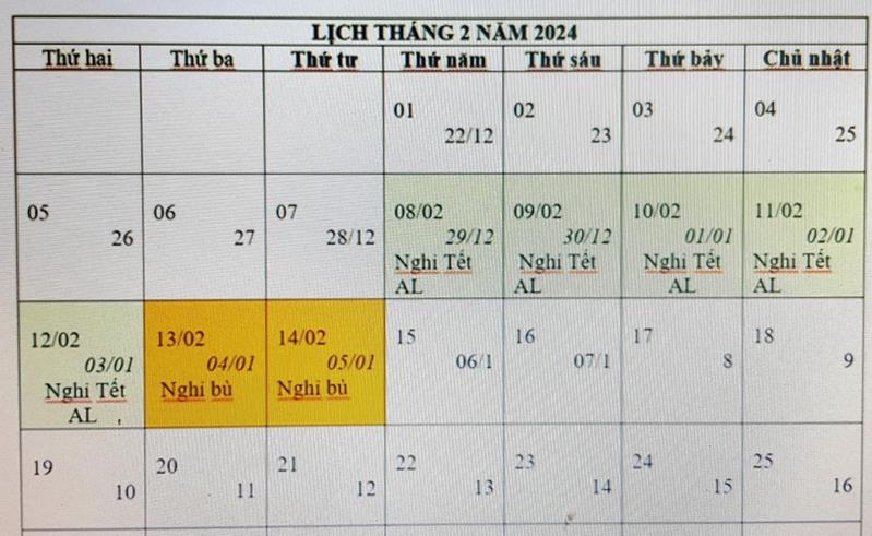 Lịch nghỉ Tết Nguyên đán