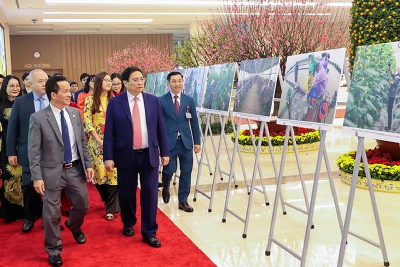 Thủ tướng tham quan triển lãm ảnh trước khi dự Diễn đàn kinh tế hợp tác, hợp tác xã năm 2024
