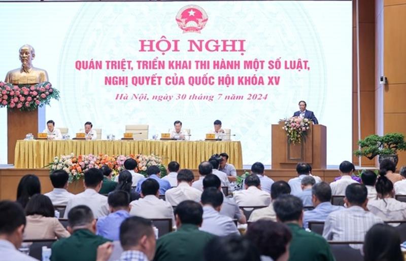 (CTT-Đồng Nai) - Sáng ngày 30-7, Thủ tướng Chính phủ Phạm Minh Chính đã chủ trì Hội nghị quán triệt, triển khai thi hành một số luật, nghị quyết của Quốc hội khóa XV. Cùng dự có các Phó Thủ tướng Chính phủ Lê Minh Khái, Trần Hồng Hà, Lê Thành Long; Phó Chủ tịch Quốc hội Nguyễn Khắc Định lãnh đạo các bộ, ban, ngành Trung ương. Hộ nghị do Chính phủ phối hợp với Uỷ ban Thường vụ Quốc hội và các cơ quan liên quan tổ chức.